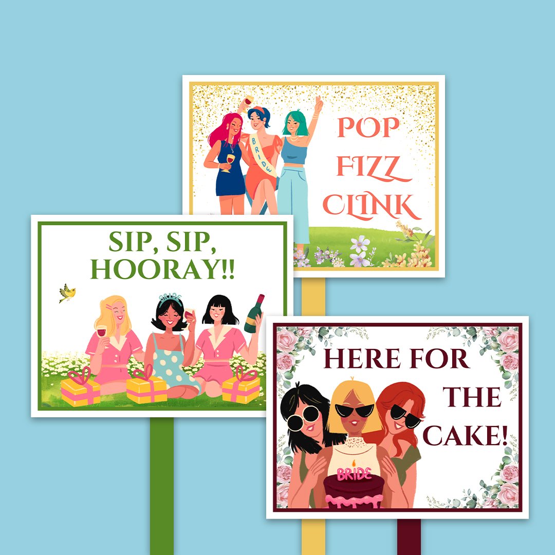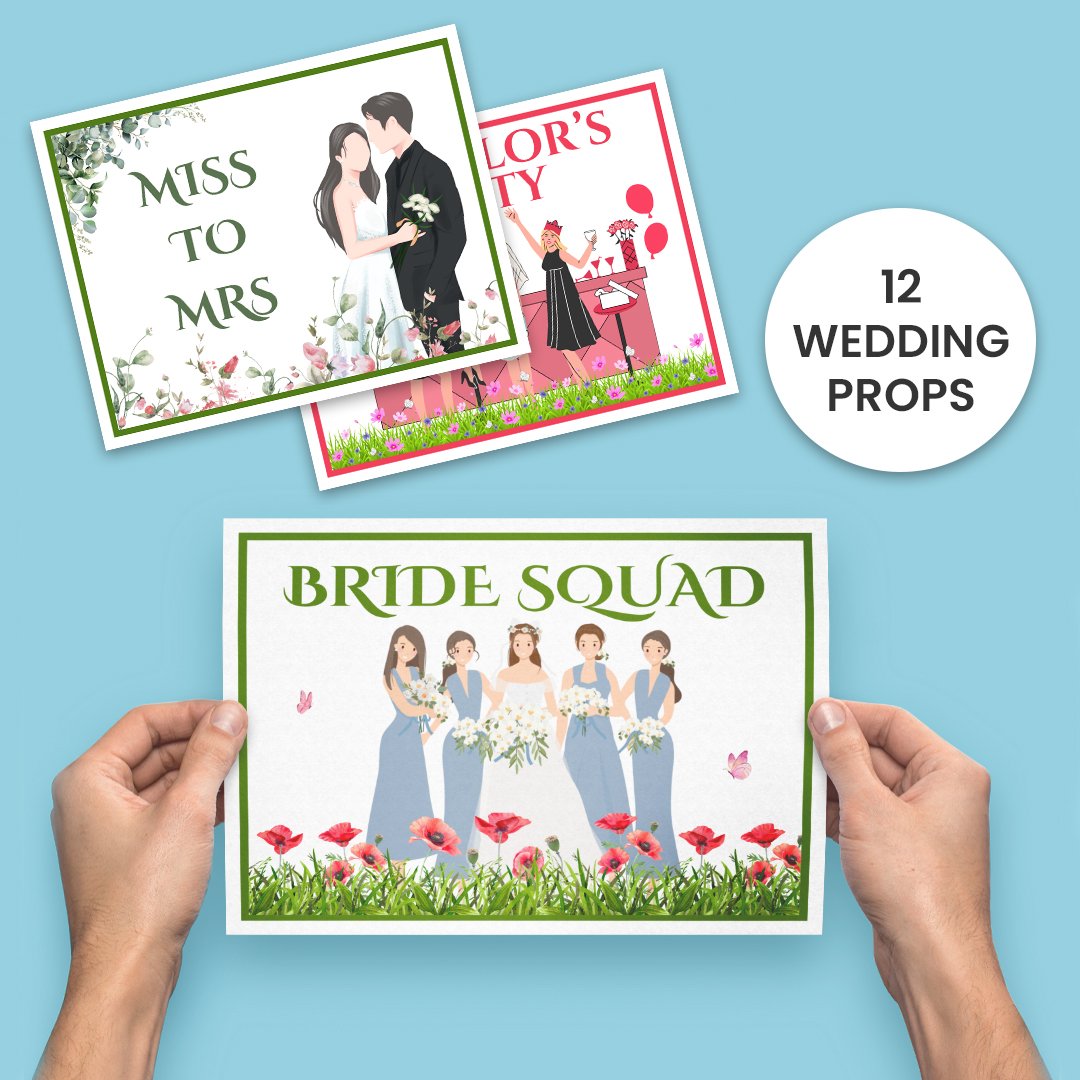 After purchasing, you’ll receive a link to instantly download the 12 Colorful Bride Squad Props.