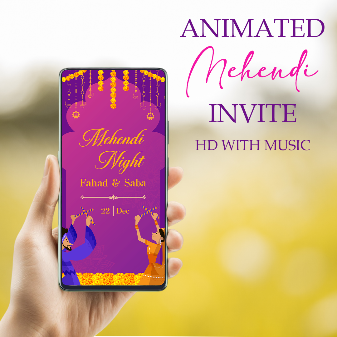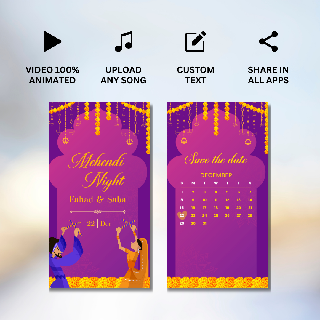 Make your Mehndi night unforgettable with this colorful and lively animated invitation, guaranteed to bring excitement and joy to everyone invited!