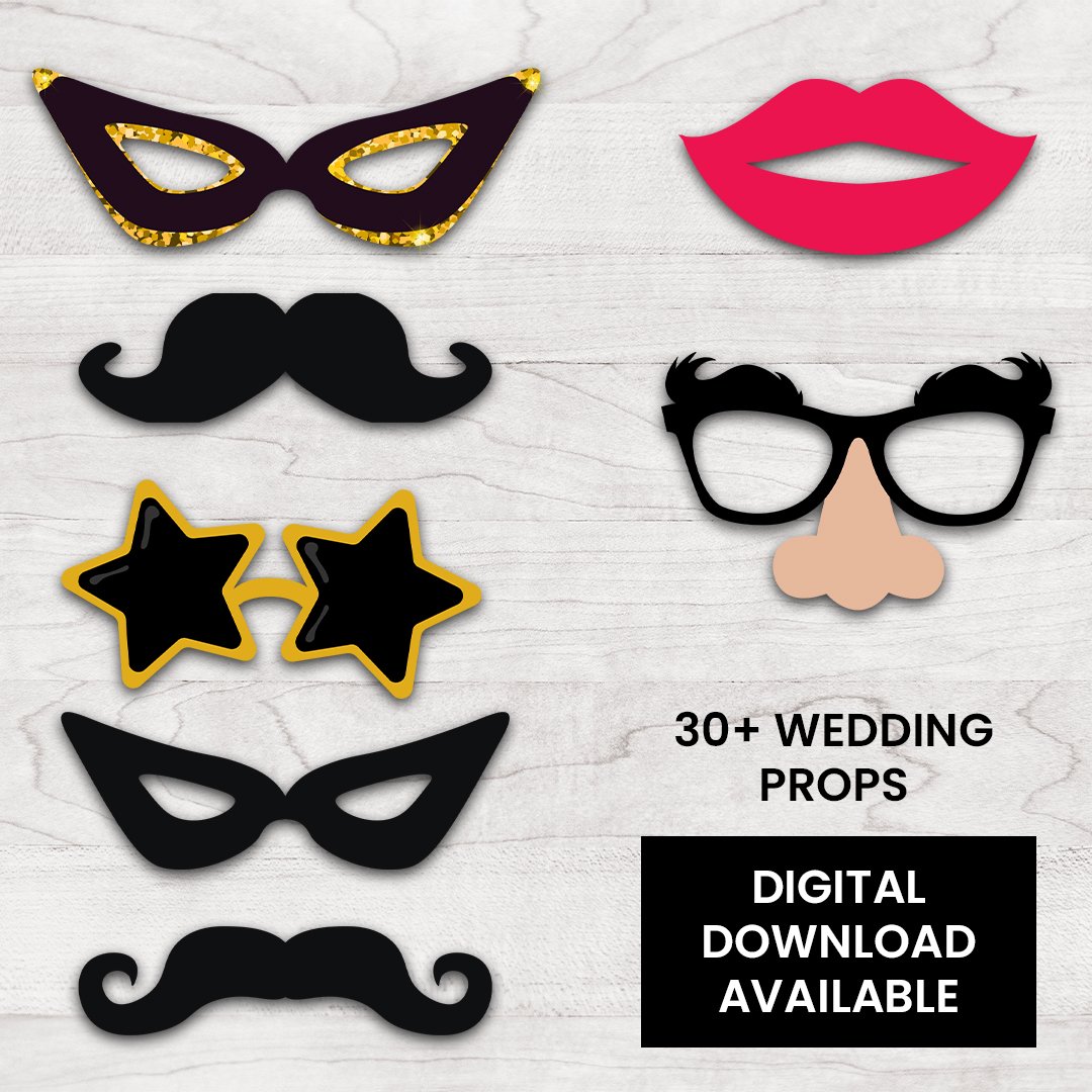 Download now and bring creativity and excitement to your wedding photo booth with these fun, printable wedding props that will make your big day even more memorable!